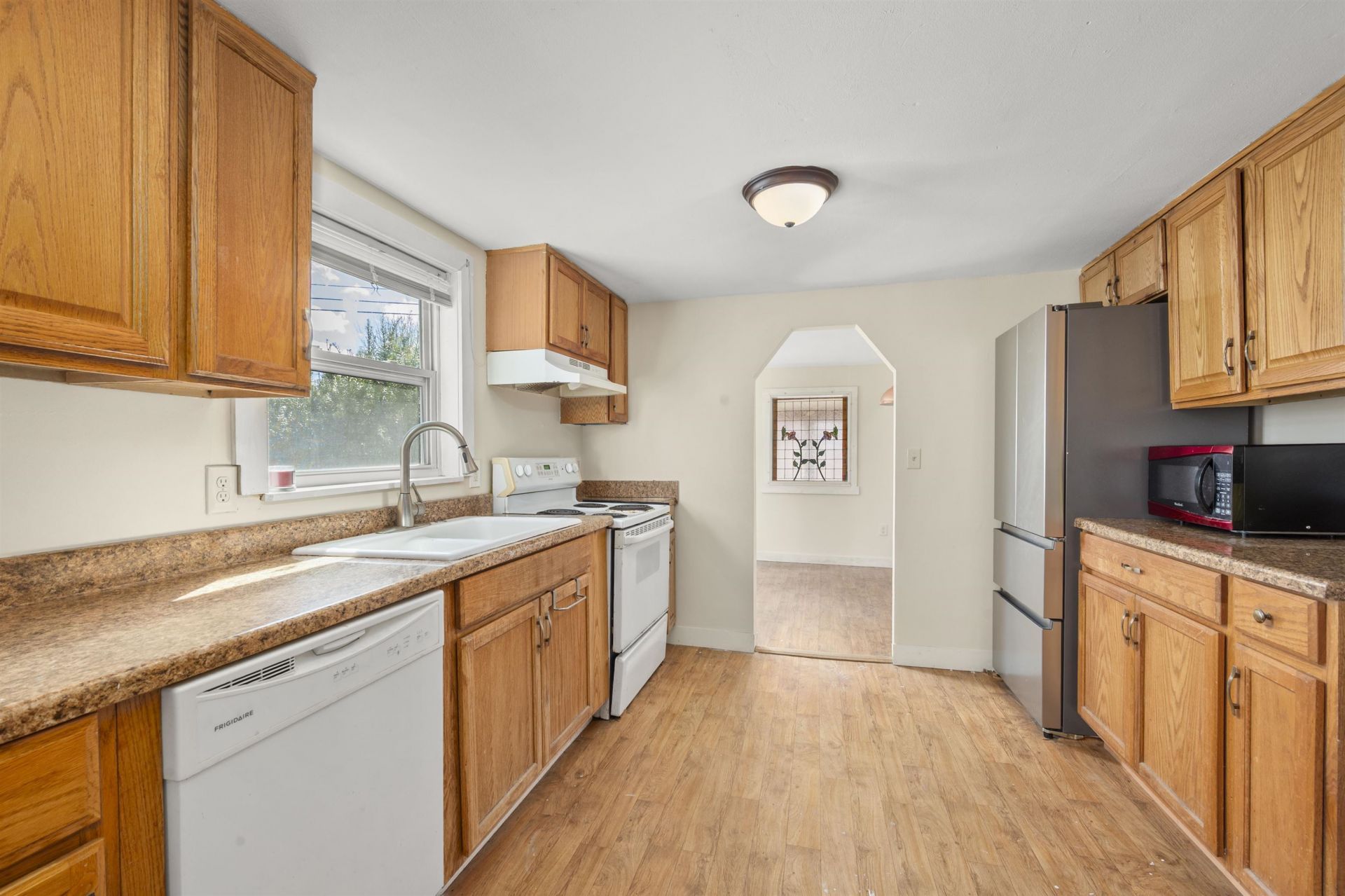 Appliances: Dryer, Microwave, Refrigerator, Washer, Electric Stove